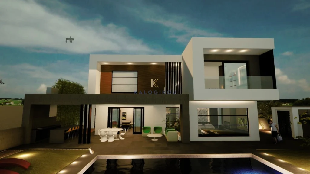 Luxury, Four-bedroom House for Sale in Psematismenos Area, Larnaca. The property enjoys good access to the neighboring villages, the motorway and to all necessary amenities. Furthermore, the seaside road from Zygi to Mazotos is also a short drive away.