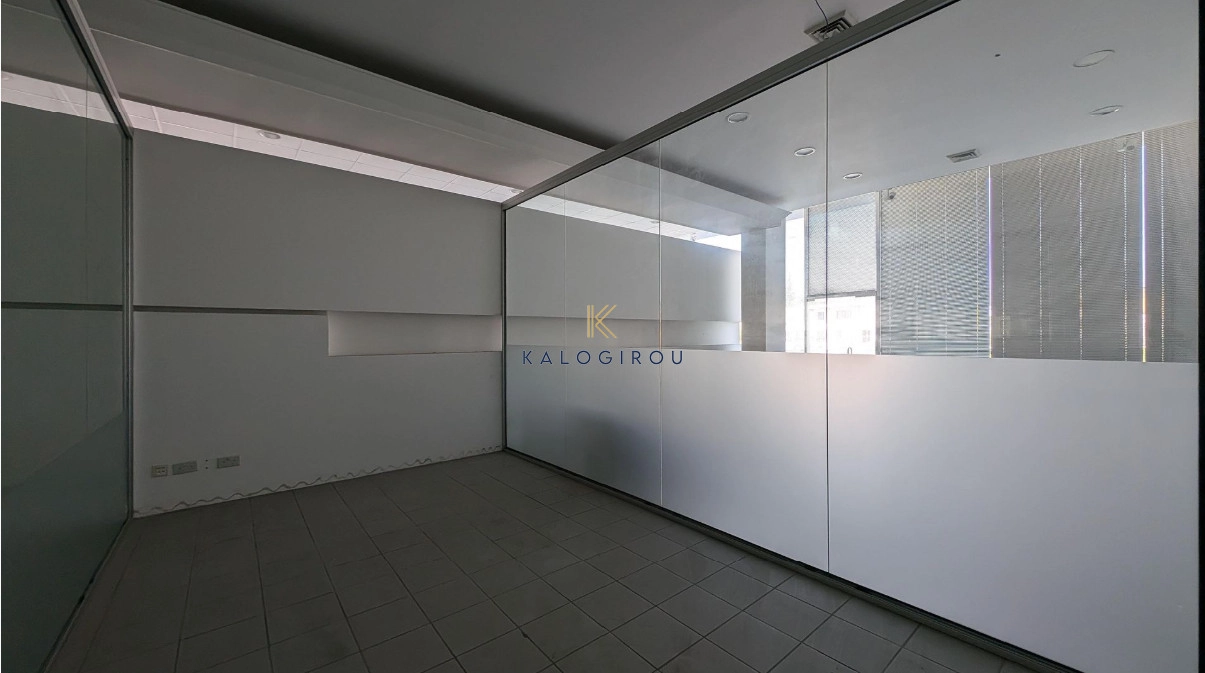 Building for sale in Kaimakli area, Nocosia. It is a double storey building, with total enclosed area of 1.392 sq.m. The ground floor of the building consists of a showroom, 9 offices, archive room, strong room, kitchen, toilets and storage. The first floor consists of 5 offices, a conference room and toilets. Externally, there are covered and uncovered parking spaces.