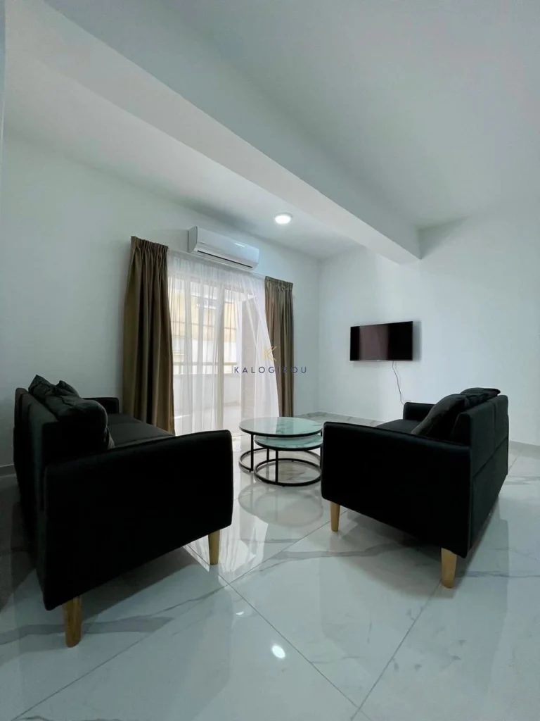 Apartment for sale in the heart of Larnaca City Center. The apartment is on the mezzanine floor, has internal covered area of 79 sq.m and it is fully renovated. It consists of an open plan kitchen with dining area, living room, two bedrooms and one main bathroom with toilet and 16 sq.m covered balcony. Also it has a free space in an open plan living and dining area that can be used as an office.
