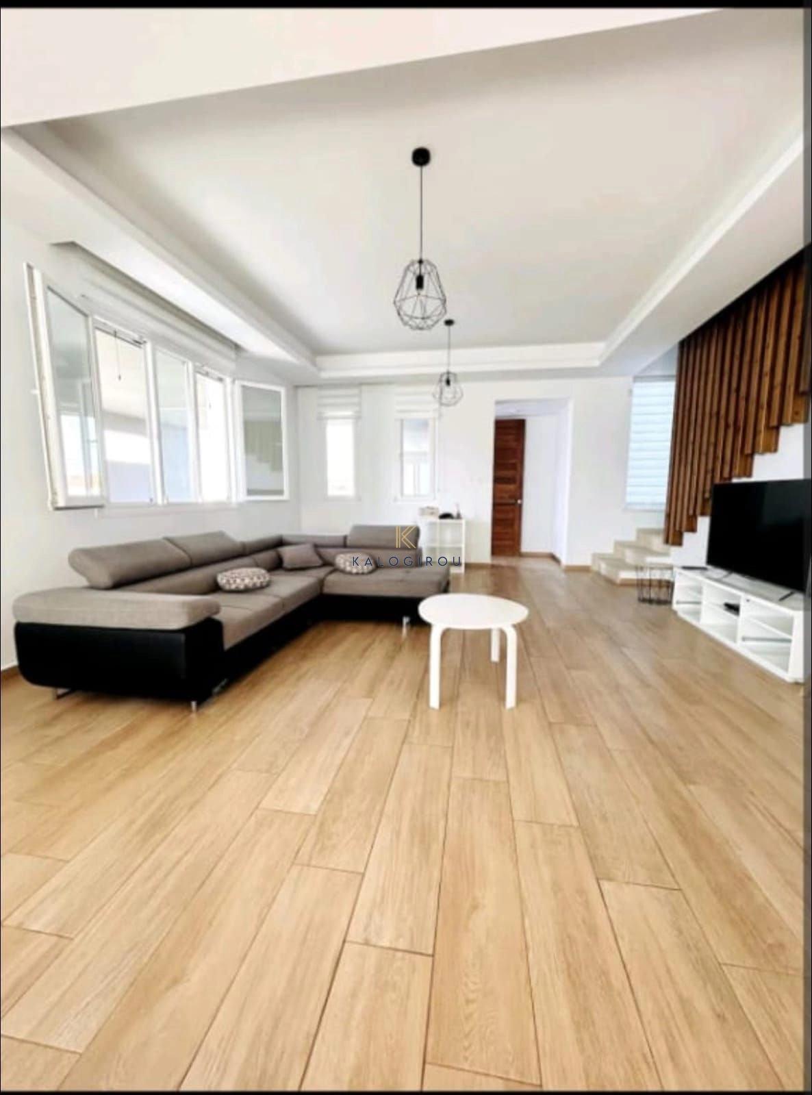 Semi detached, Three Bedroom House for Sale in Aradippou. The ground floor of the property consists of an open plan living room and dining room, a kitchen with dining room too, a small kitchenette and a guest toilet. The first floor consists of three bedrooms, one bedroom has en suite shower with wc, one main bathroom with w.c. The property also has veranda in the front and back side of the house, garden and covered parking.