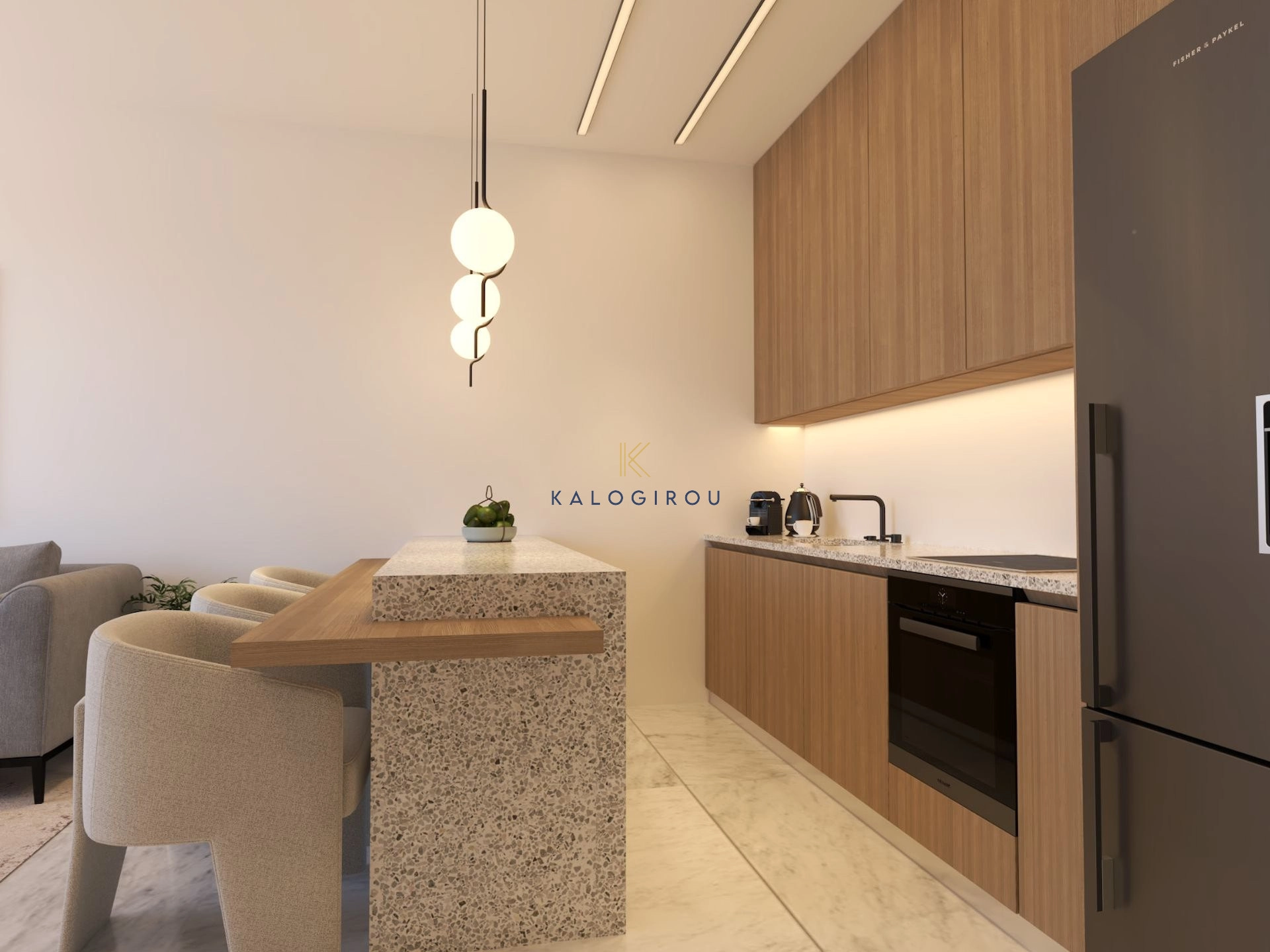 Apartment for sale in Drosia area, Larnaca. The property consists of an open plan kitchen with dining area, living room, a main bathroom, one bedroom and a beautiful covered veranda. Moreover, the residents will have access to a covered parking and storage room.
