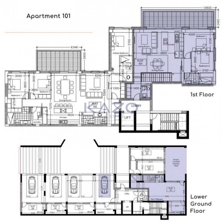 A spacious open-plan living and dining area forms the social hub of the apartment. Floor-to-ceiling openings flood the interiors with light and provide direct access to a large covered veranda, ideal for al fresco dining or entertaining.