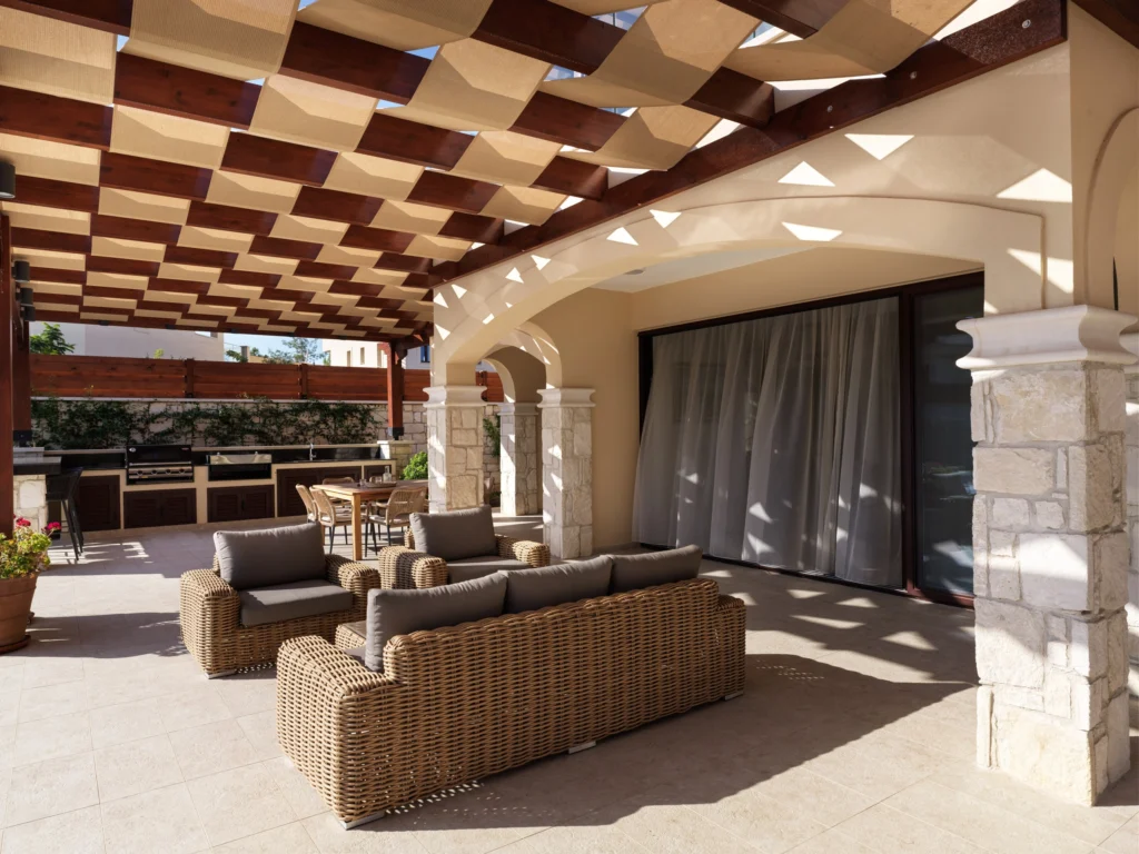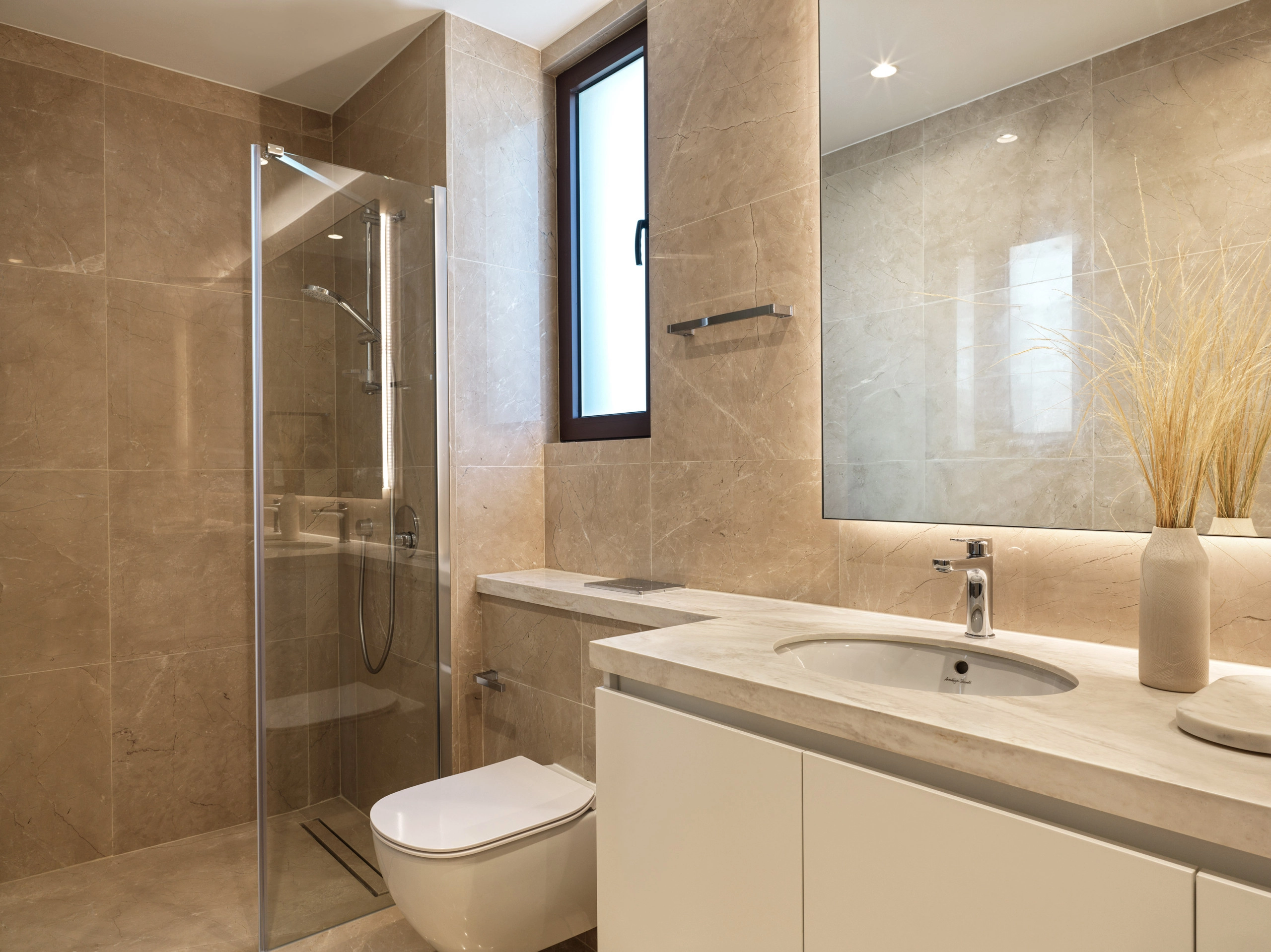 These luxurious detached villas at Dionysus Greens are designed and built to exceed your expectations in every way and offer Mediterranean living at its zenith. Impeccable attention to detail is evident everywhere with the highest quality Italian-Style design kitchen units, lavish Marble bathrooms and marble or parquet flooring throughout. An effortless lifestyle is assured with provisions for underfloor heating, concealed dual air conditioning/heating, home automation system provisions offering the option of having additional technology pre-installed to meet the owner’s requirements and discreet security system. The villas offer a versatile basement area which may be used as an additional bedroom, playroom, gym, TV room, etc.