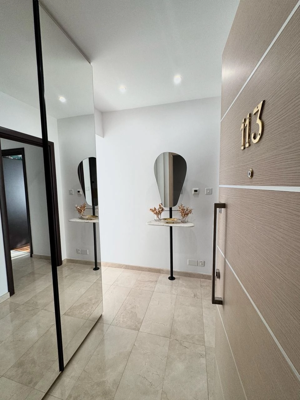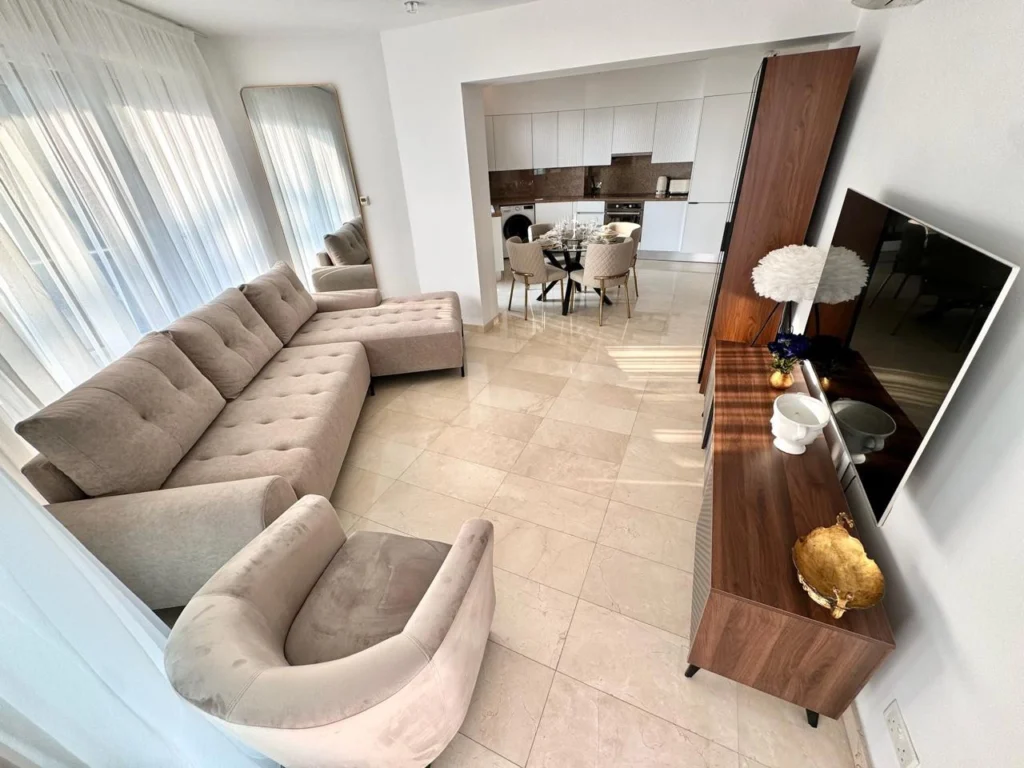 The apartment offers a spacious layout and modern comforts. The living room opens onto a large terrace, making it perfect for relaxation and enjoying the stunning sea landscape. A convenient kitchen, two bedrooms, and two bathrooms ensure maximum comfort for living.