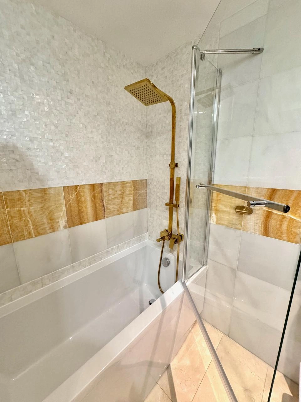 The apartment offers a spacious layout and modern comforts. The living room opens onto a large terrace, making it perfect for relaxation and enjoying the stunning sea landscape. A convenient kitchen, two bedrooms, and two bathrooms ensure maximum comfort for living.