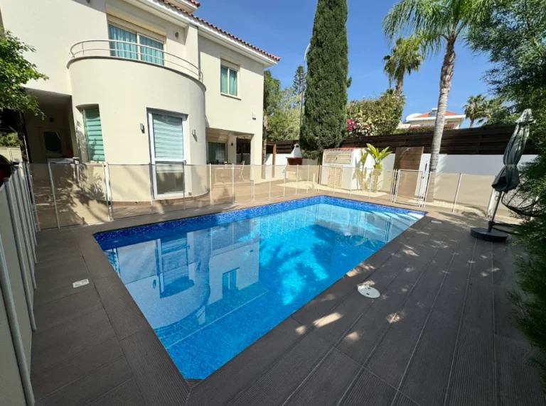 This beautifully furnished 5-bedroom villa is available for sale in a quiet and exclusive coastal area near Parklane, one of the most prestigious locations in Limassol. Situated within a gated complex, the property offers privacy, security, and unparalleled access to the best beaches and a peaceful promenade—just a 1-minute walk away. The area is well-maintained, free from construction sites and noisy establishments, ensuring a serene living environment.