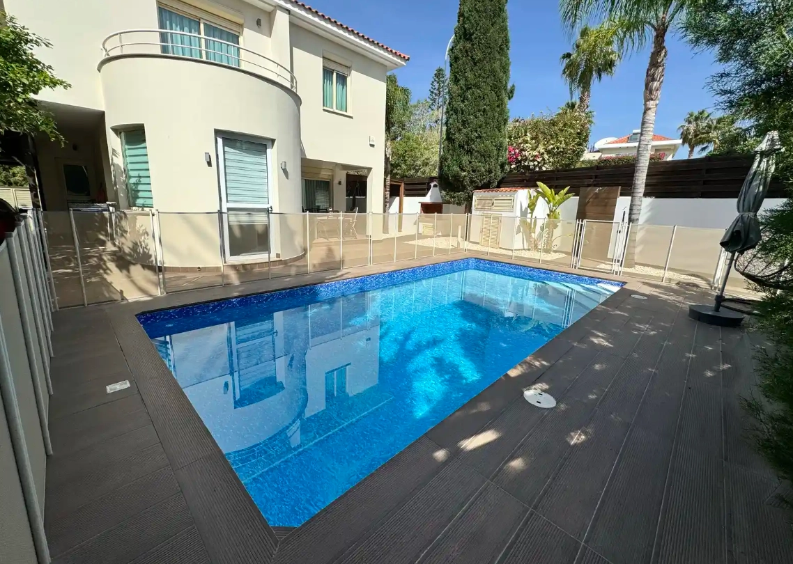 This beautifully furnished 5-bedroom villa is available for sale in a quiet and exclusive coastal area near Parklane, one of the most prestigious locations in Limassol. Situated within a gated complex, the property offers privacy, security, and unparalleled access to the best beaches and a peaceful promenade—just a 1-minute walk away. The area is well-maintained, free from construction sites and noisy establishments, ensuring a serene living environment.