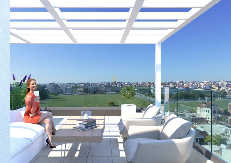 Apartment for sale in Vergina area, Larnaca Town. The property has internal covered area of 49.55 sq. m, consists of 1 bedroom, open plan kitchen, living room, 1 main shower with wc, 13.90 sq.m. covered verandas, storage room and covered parking.