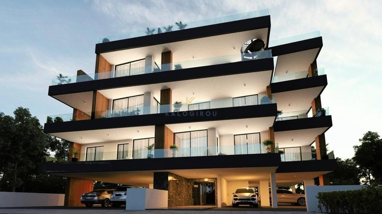 Apartment for sale in Larnaca, Mc Donald Drive Thru area. The apartment has internal covered area of 80 sq.m, consists of an open plan kitchen, dining and living area, two bedrooms, one en suite shower with wc, one main shower with wc, laundry area, covered balcony of 20 sq.m, storage room and covered parking