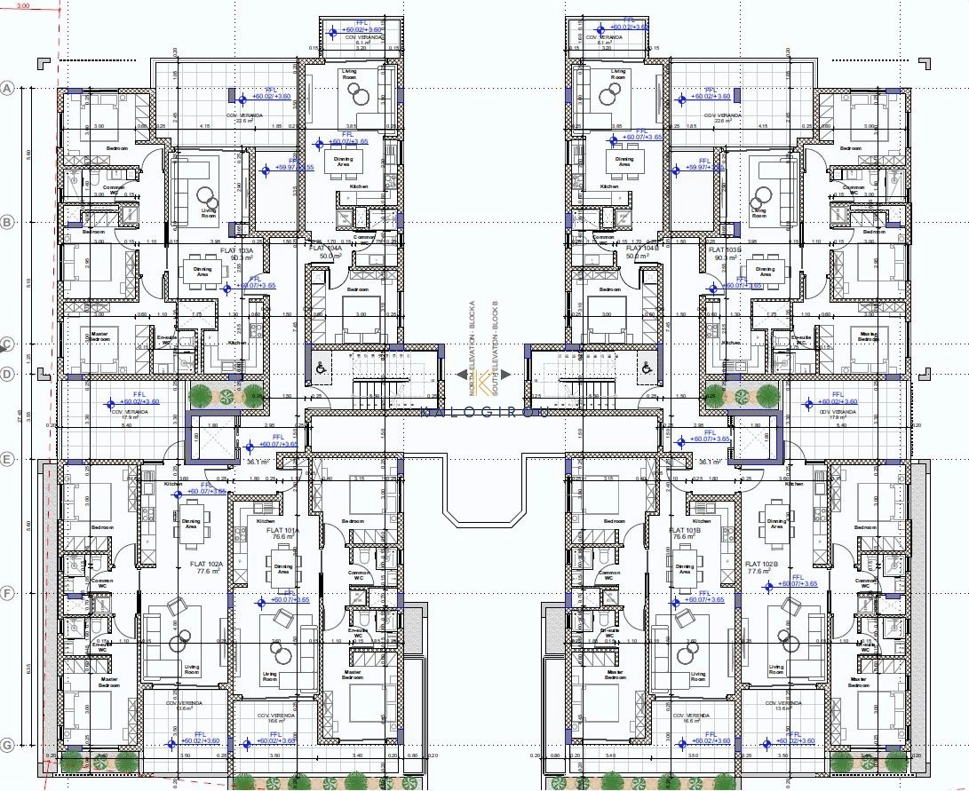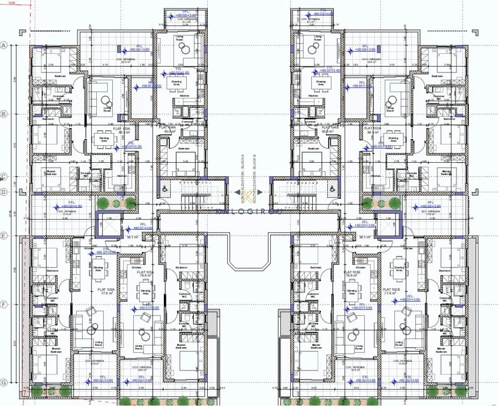 The property is a part of a gated complex situated in a quiet neighborhood, in a prime location in Larnaca. This project is a luxurious modern designed gated resort with two buildings. Comprising of 14 one, two and three bedrooms apartments 14 on each block, sharing a pool area as well as a private garden area. Each apartment has its own covered parking and strorage. 4 penthouses each with its own roof garden and an extra w/c on the roof top.