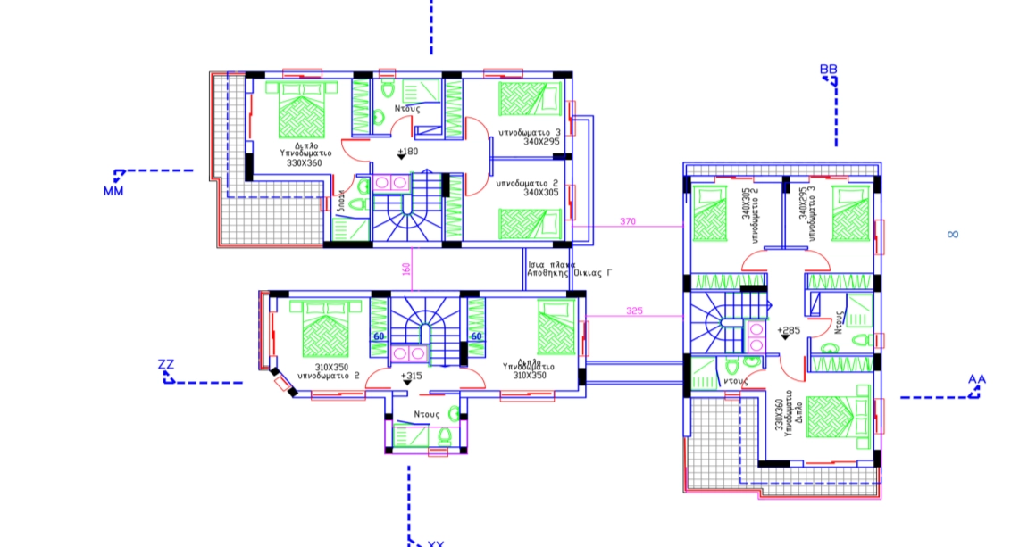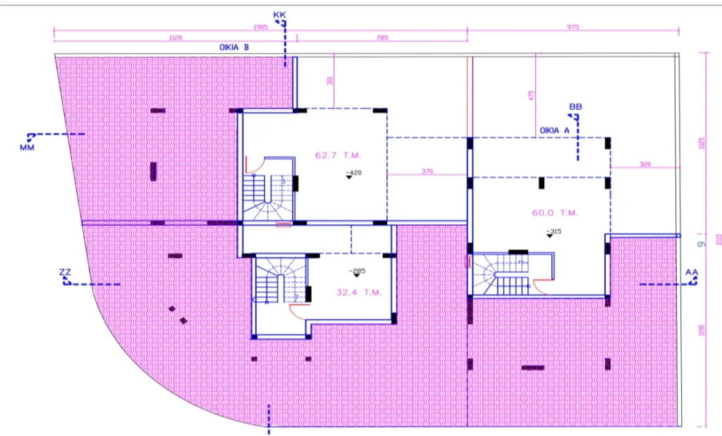 A house for sale in a privileged area of the municipality of Tseri, Nicosia. This residential complex consists of three independent houses, ideal for family life. Two residences offer 3 bedrooms and one has 2 bedrooms, making them a great choice for different needs. Each house includes the first and second floors, as well as a basement, providing ample space for living and relaxing. In the basement there is a work/storage area, and on the ground floor there is a bright living room, a modern kitchen, a dining room and a comfortable guest bathroom. The second floor is entirely devoted to cozy bedrooms with private bathrooms. Each residence has a parking space and terraces on both floors. There are green areas and courtyards in front of the houses, creating a comfortable space for outdoor recreation.