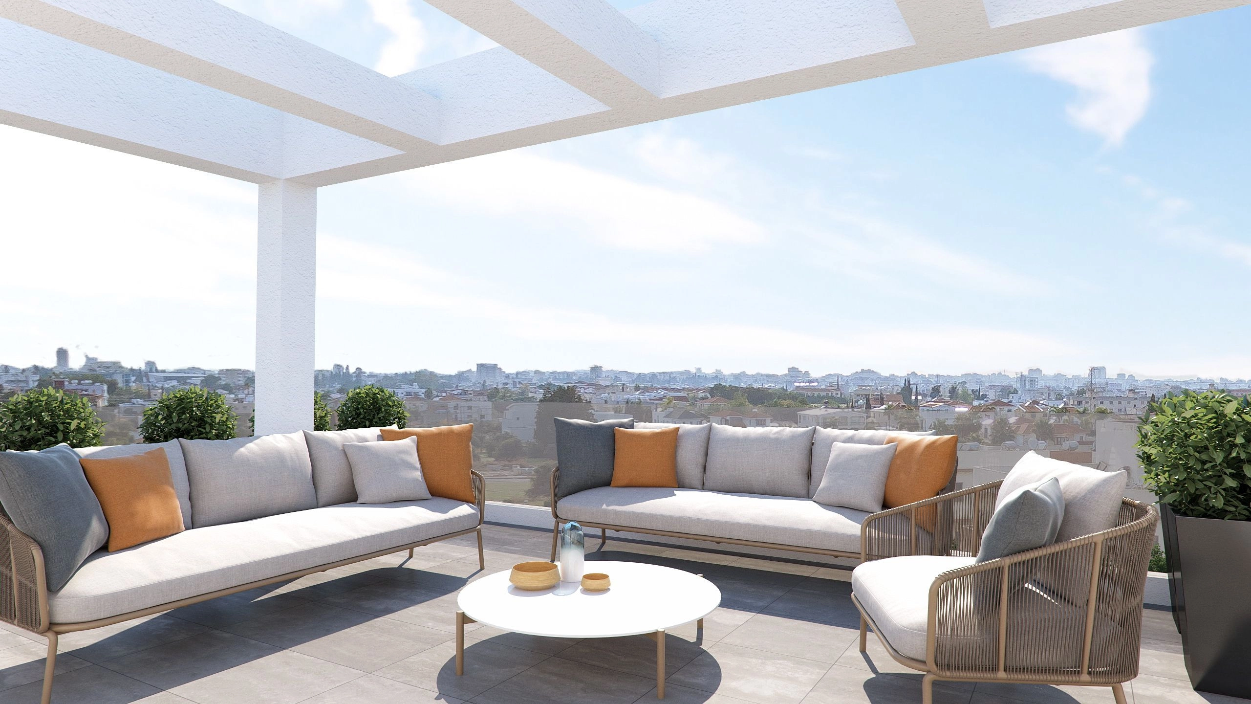 This Residences comprises of six 2-bedroom apartments positioned on three floors. The third-floor units enjoy private and individual access to a large roof garden on the 4th floor with its barbeque area, as well as an extra wc-shower and room that can be converted into 3rd bedroom in the future. Furthermore, these top floor units will have net metering and a photovoltaic system.