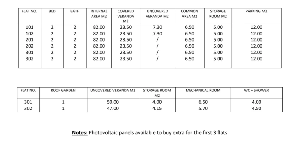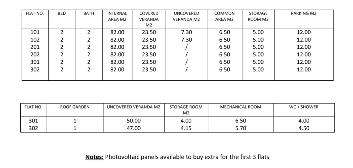This Residences comprises of six 2-bedroom apartments positioned on three floors. The third-floor units enjoy private and individual access to a large roof garden on the 4th floor with its barbeque area, as well as an extra wc-shower and room that can be converted into 3rd bedroom in the future. Furthermore, these top floor units will have net metering and a photovoltaic system.