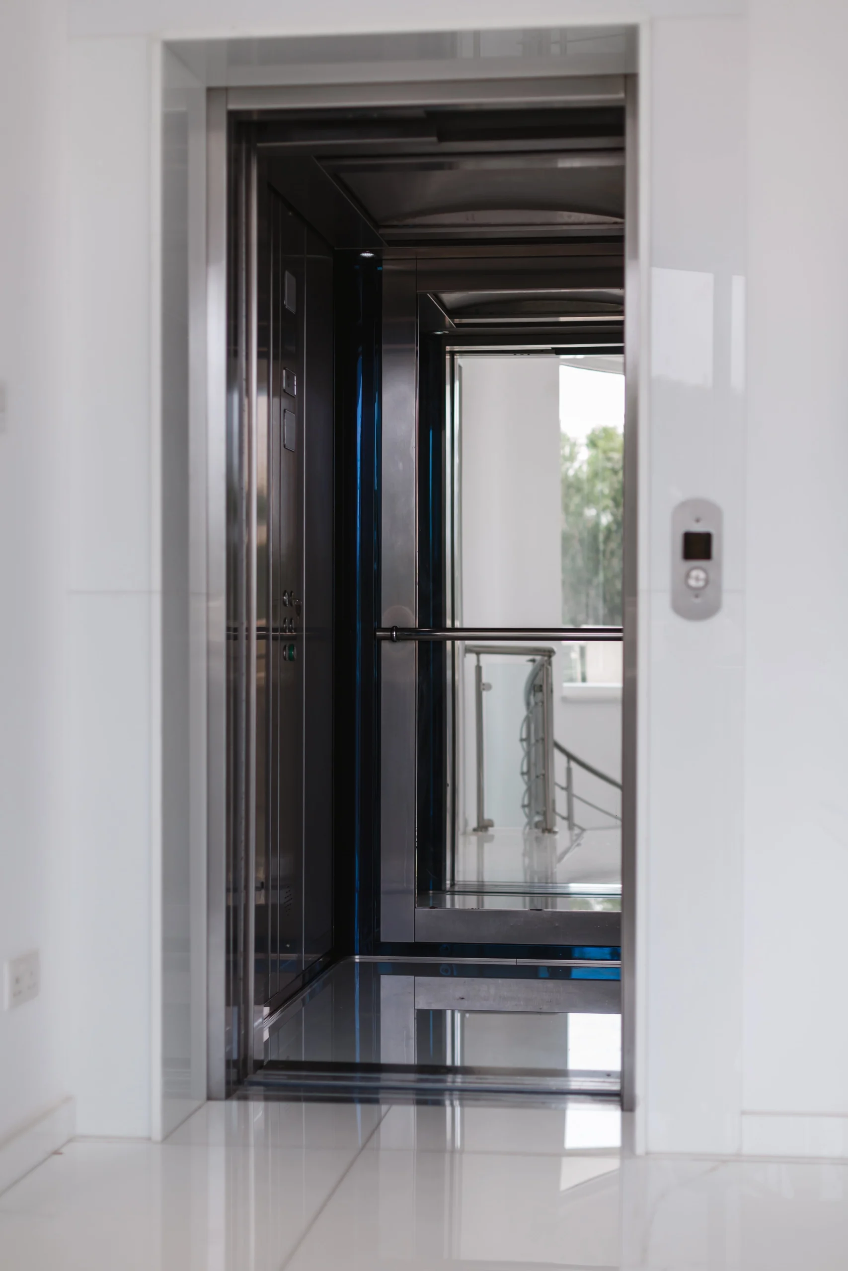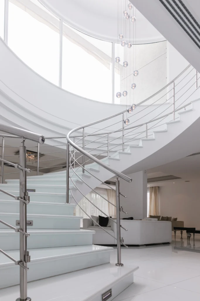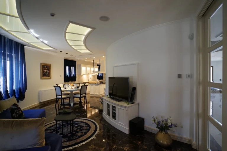 This luxurious house also offers practical amenities, such as a private parking area for two cars and a convenient lift, ensuring easy access between the different levels. For guests or staff, a separate guest house provides comfortable accommodation.