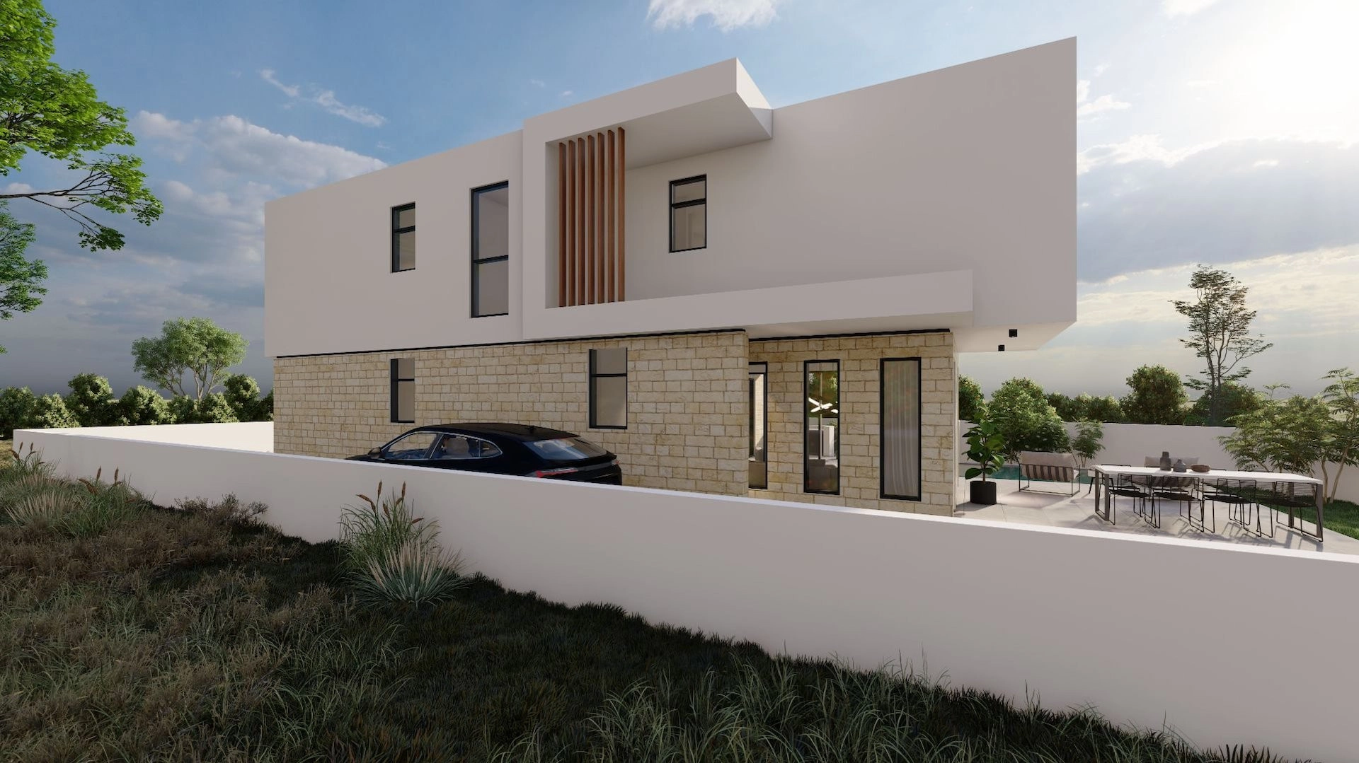 Our modern 4-bedroom and 5-bathroom villa, covering over 237sqm on a 582sqm plot, features open-plan living and luxurious bedrooms with balconies overlooking the sea.