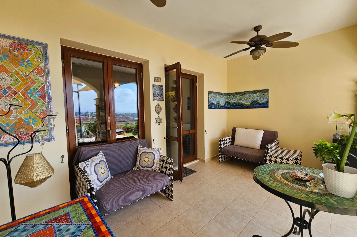 This amazing 3 bedroom ground floor apartment is located in the beautifully landscaped Theseus Village in the Award Winning Aphrodite Hills Resort. The property sits in a prestigious location on a large plot offering complete privacy and the most breathtaking views towards the blue Mediterranean Sea.