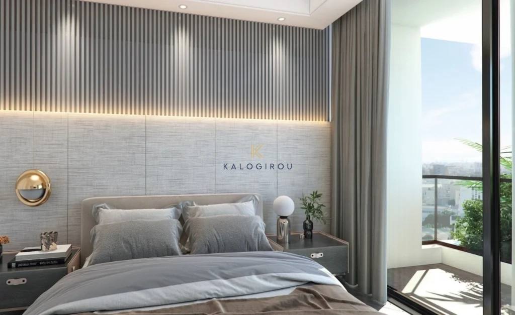 Apartment for sale in New Mall Area, Larnaca. The property consists of two bedrooms the main en-suite, an open plan kitchen, living and dining area and a shower. It also has 18.9 sq. m of covered veranda, storage room and athe right of use a private covered parking on the ground floor.