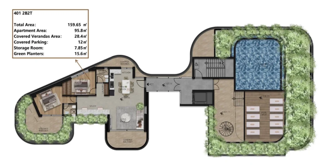 Rooftop luxury swimming pool with breathtaking views, an exclusive VIP Gym, and 12 unique apartment types, catering to diverse tastes