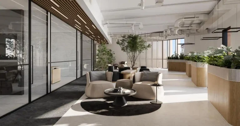 2. Sunlit office spaces with floor-to-ceiling windows for abundant natural light.