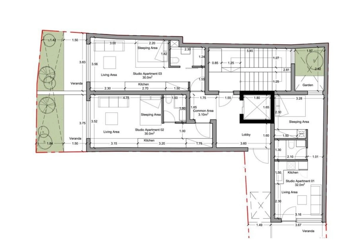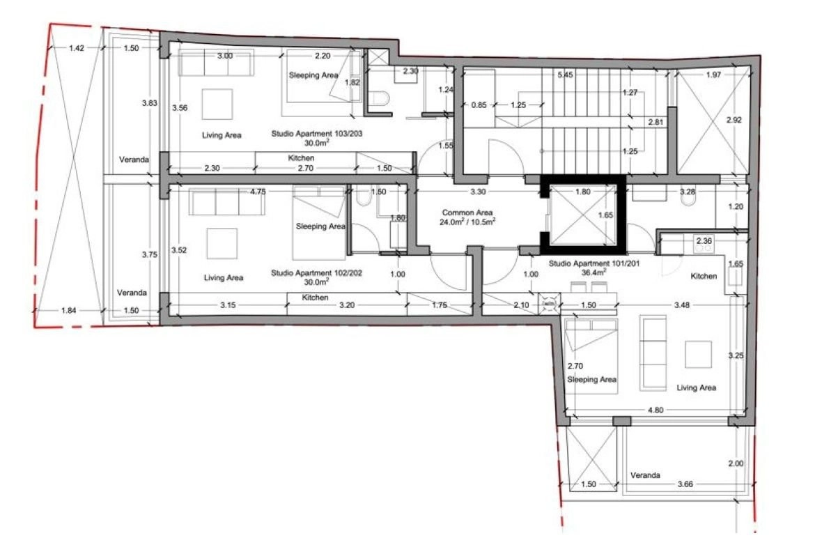 The planning application has been submitted for a development of 15 units, including 6 one-bedroom apartments and 9 studios.