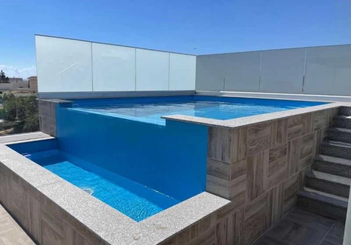 Both sea view and mountain view available as it cover a full floor (the last floor) and a huge terrace with a private swimming pool and sun-beds. Everything is new from kitchen appliances to smart TV, AM, external rollout for perfect sleep. Great place to relax but also party.