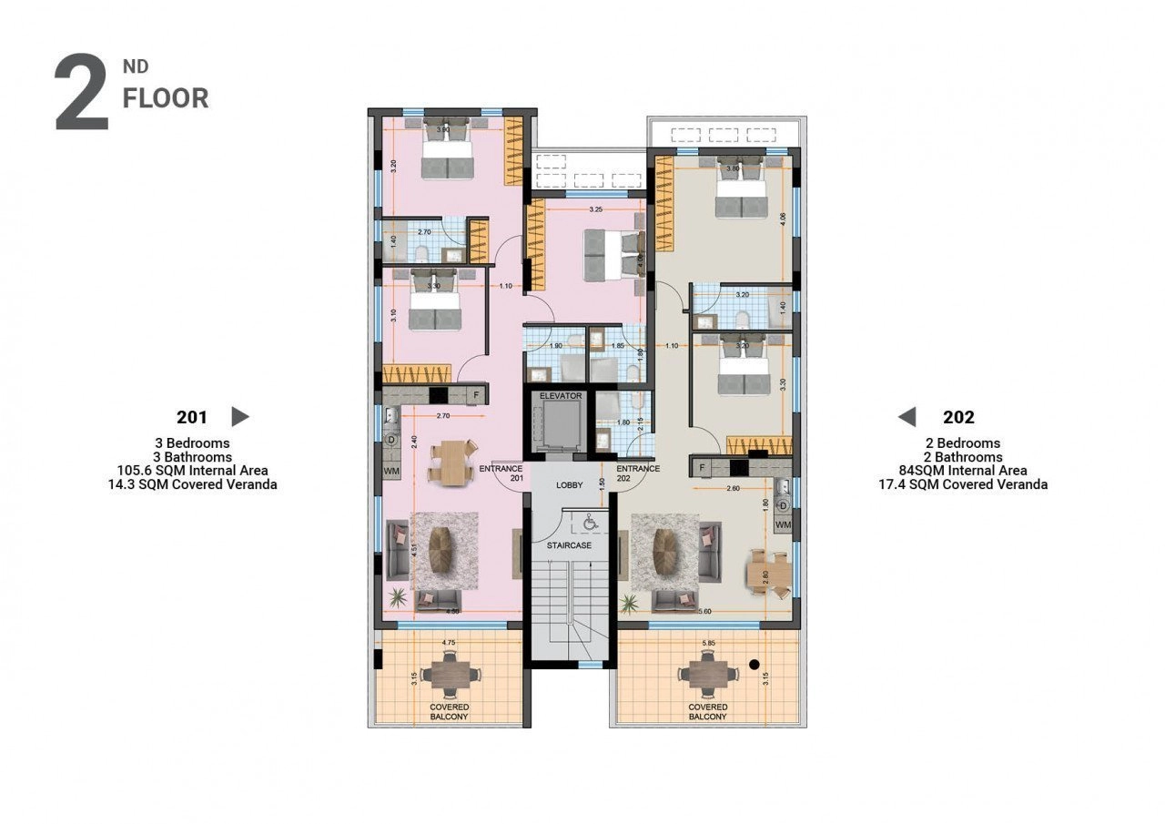 The project consists of 2 & 3 Bedroom apartments with a modern and luxurious design.