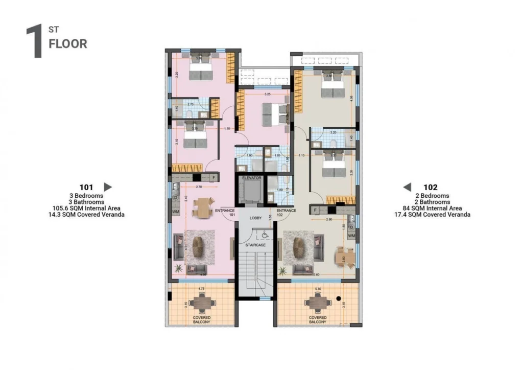 The project consists of 2 & 3 Bedroom apartments with a modern and luxurious design.