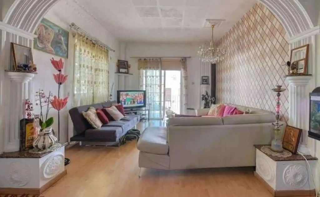 4-bedroom house for sale in Deryneia, Famagusta. The house is partially furnished and equipped with household appliances. Air conditioners are installed. There is a covered parking space. A spacious veranda. The house stands on a large plot of 391 m2. Located close to all necessary amenities.