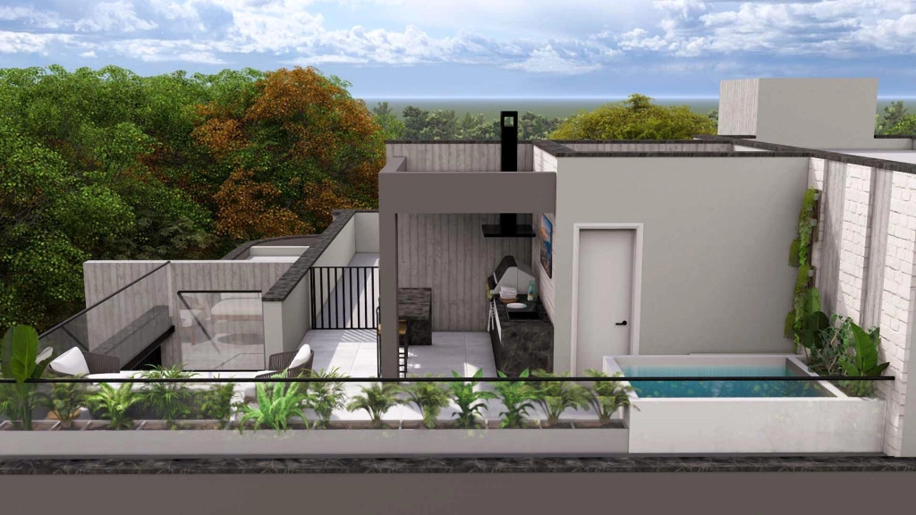 The building spans three floors, featuring a selection of one-, two-, and three-bedroom apartments, as well as luxurious penthouses with private rooftop gardens and jacuzzis. Each residence is thoughtfully designed to maximize natural light and enhance comfort, creating an inviting atmosphere with elegant interiors and spacious open-plan layouts.