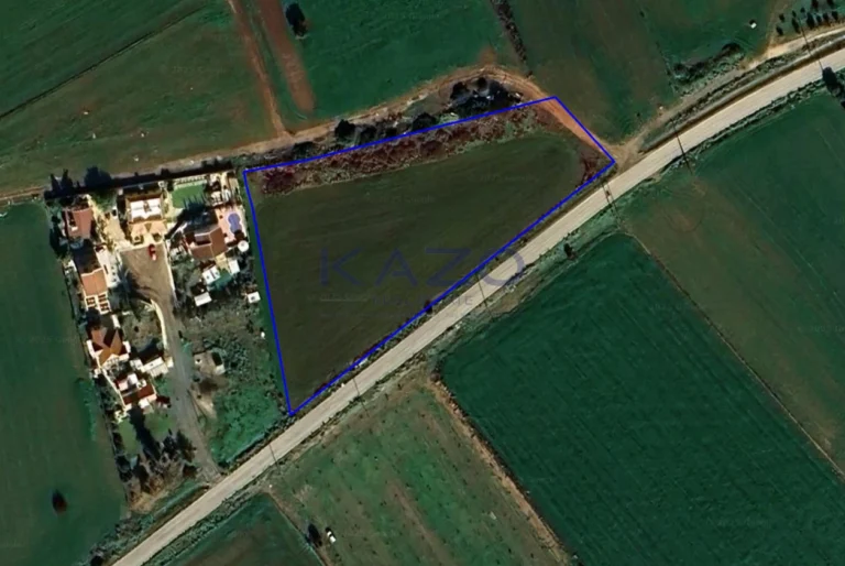 Land for sale in Dromolaxia area, Larnaca. Land of 8935 sq m falls within residential planning zone Κα6, with 90% building density, 50% land coverage and permit for construction up to 2 floors with maximum height of 10 m. It has irregular shape, and its abound to public registered road with no obvious obstacles.