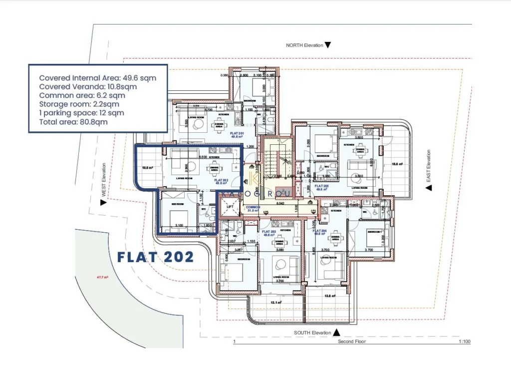 Apartment for sale in Livadia area, Larnaca. This amazing property consists of an open plan kitchen and living room with dining area, one bedroom, a bathroom (with shower) and covered veranda. The property has exclusive right of use to a storage and covered parking.