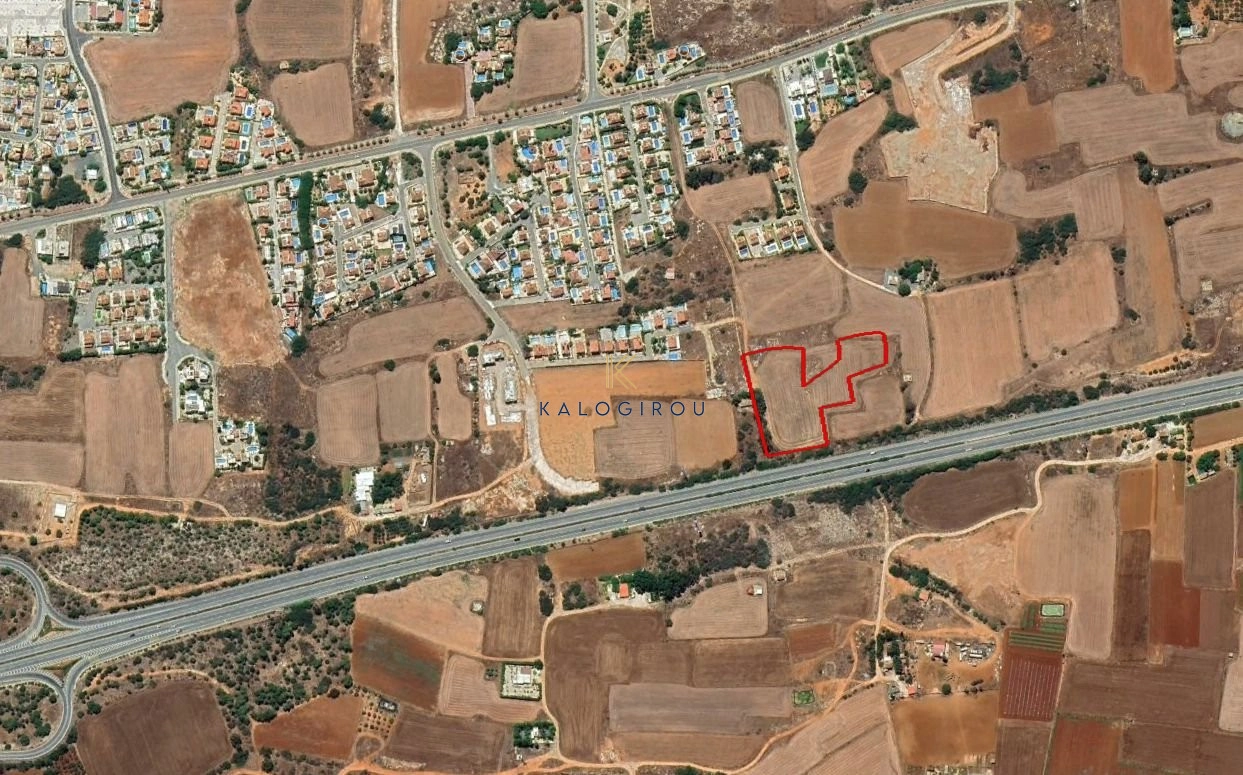 The plot has an irregular shape with a flat surface and is easily accessible via a registered road along its eastern boundary. Additionally, its northern boundary is affected by the development of the Larnaca-Agia Napa motorway.