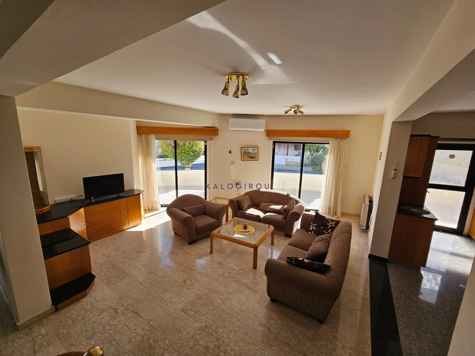 Duplex for sale in Larnaca, Makenzy area. The Duplex is on the ground floor, with a spacious internal covered area of 233 sq.m It consists of a separate kitchen, big living-dining room, a main bathroom with walk in shower, 3 bedrooms.