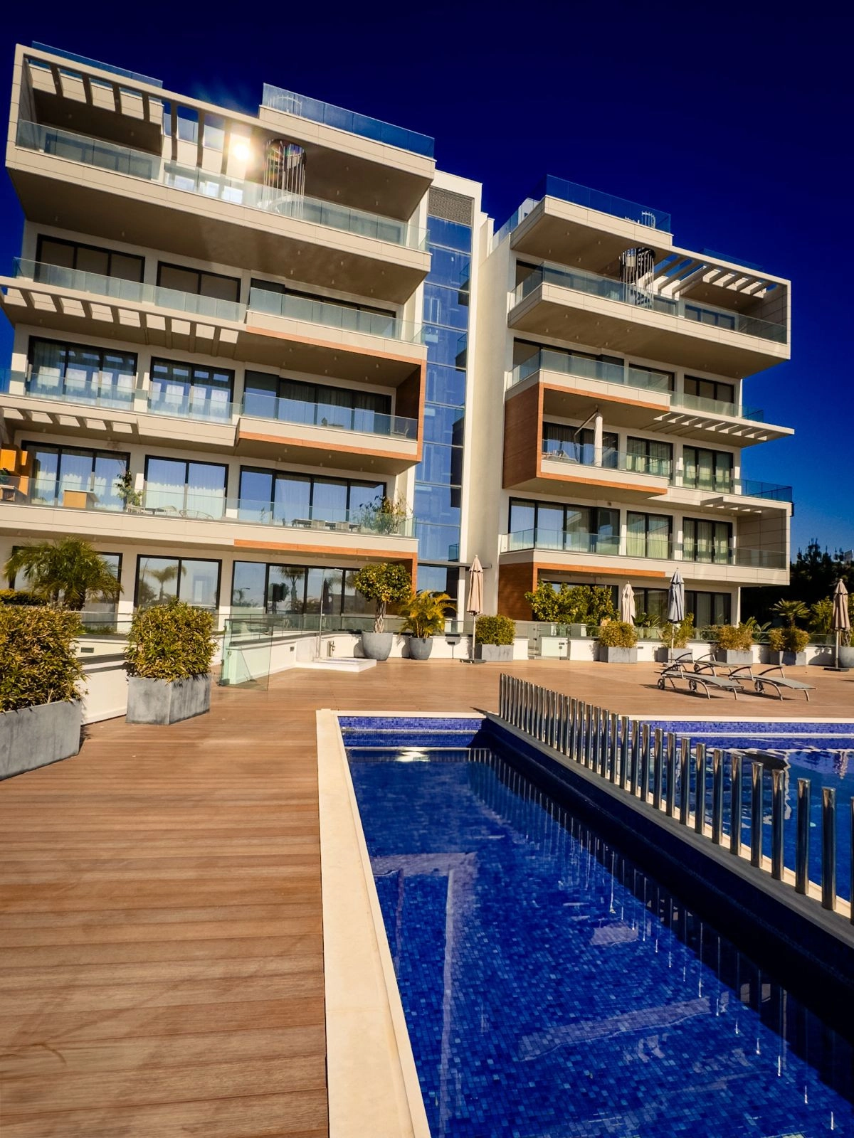 A modern luxury residence in Amathunda, Limassol, within walking distance to the beach (300m). This 3-bedroom apartment offers panoramic sea views from the living room and two bedrooms. Designed with premium Italian furniture and high-end finishes, it features heat pump underfloor heating and a VRV air-conditioning system for year-round comfort. The complex includes underground parking, a pool, gym, sauna, and a well-equipped children’s playground.