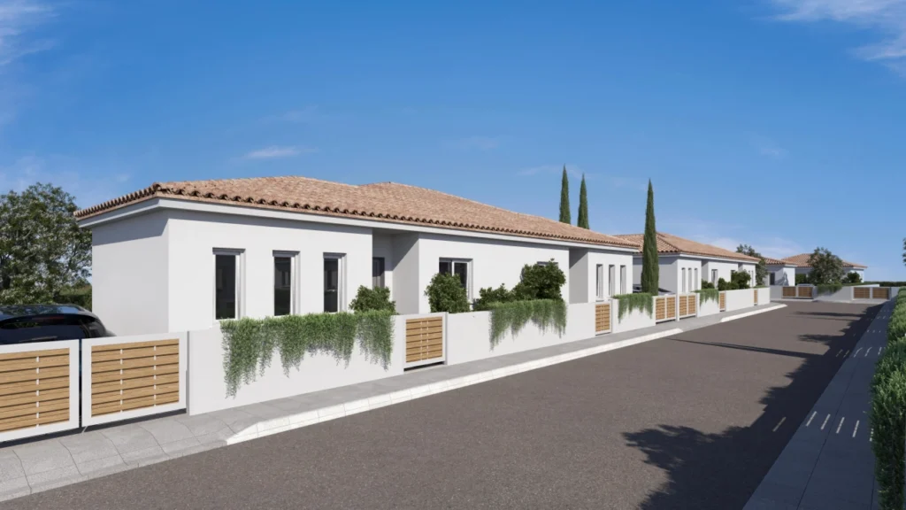 Modern house for sale in a quiet area of Frenaros, Famagusta. The project includes 3 detached and 7 adjacent bungalows, characterized by modern design and high quality construction.Only high-quality materials are used in construction. The house has a spacious open-plan kitchen-living room. The complex is designed in such a way as to ensure maximum privacy for each tenant.All necessary infrastructure facilities are within walking distance: a school (250 m), parks (200 m), a shopping center (105 m), restaurants (200 m), and a hospital (205 m).This is an ideal option for those who are looking for a small but comfortable home away from the hustle and bustle of the city, but with easy access to all amenities.