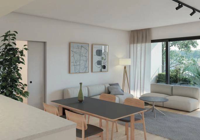 The residence features a generous open-plan living and dining area, seamlessly connected to a modern kitchen with premium fittings. The master suite includes an en-suite bathroom and walk-in wardrobe, while two additional bedrooms share a stylish family bathroom. Expansive floor-to-ceiling windows and oversized verandas extend living spaces into the outdoors.