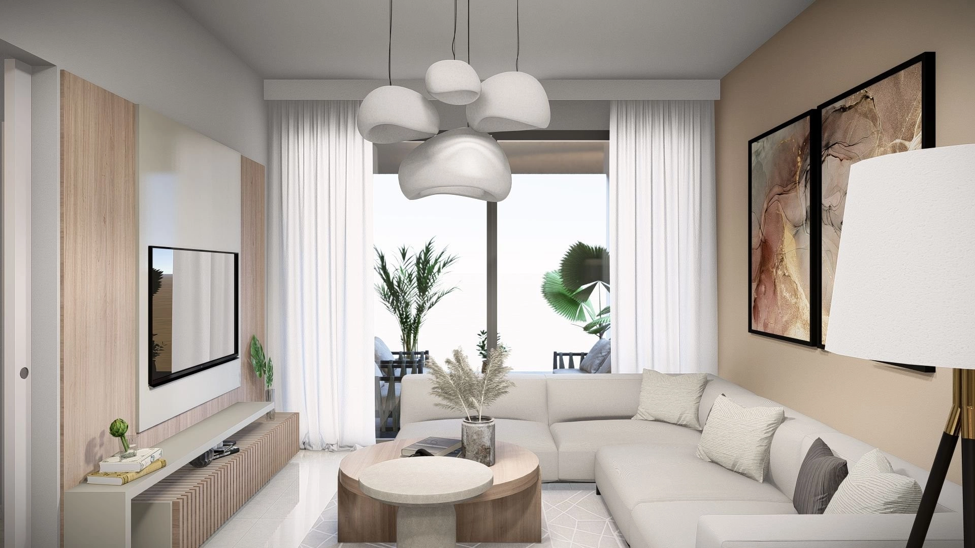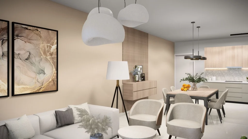 Modern off-plan apartment located in the vibrant area of Geroskipou. Spanning 106 m2, this modern unit features 2 spacious bedrooms and 2 well-appointed bathrooms, making it ideal for families or those seeking a comfortable living space. Situated on the first floor of a three-story building, this apartment offers both privacy and ease of access.