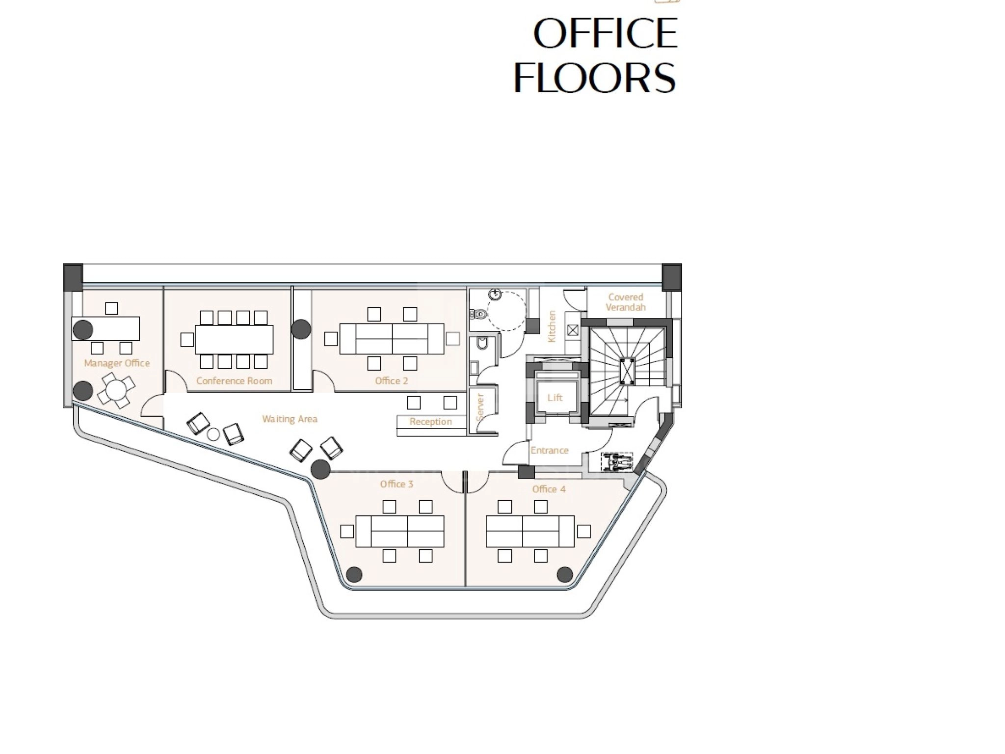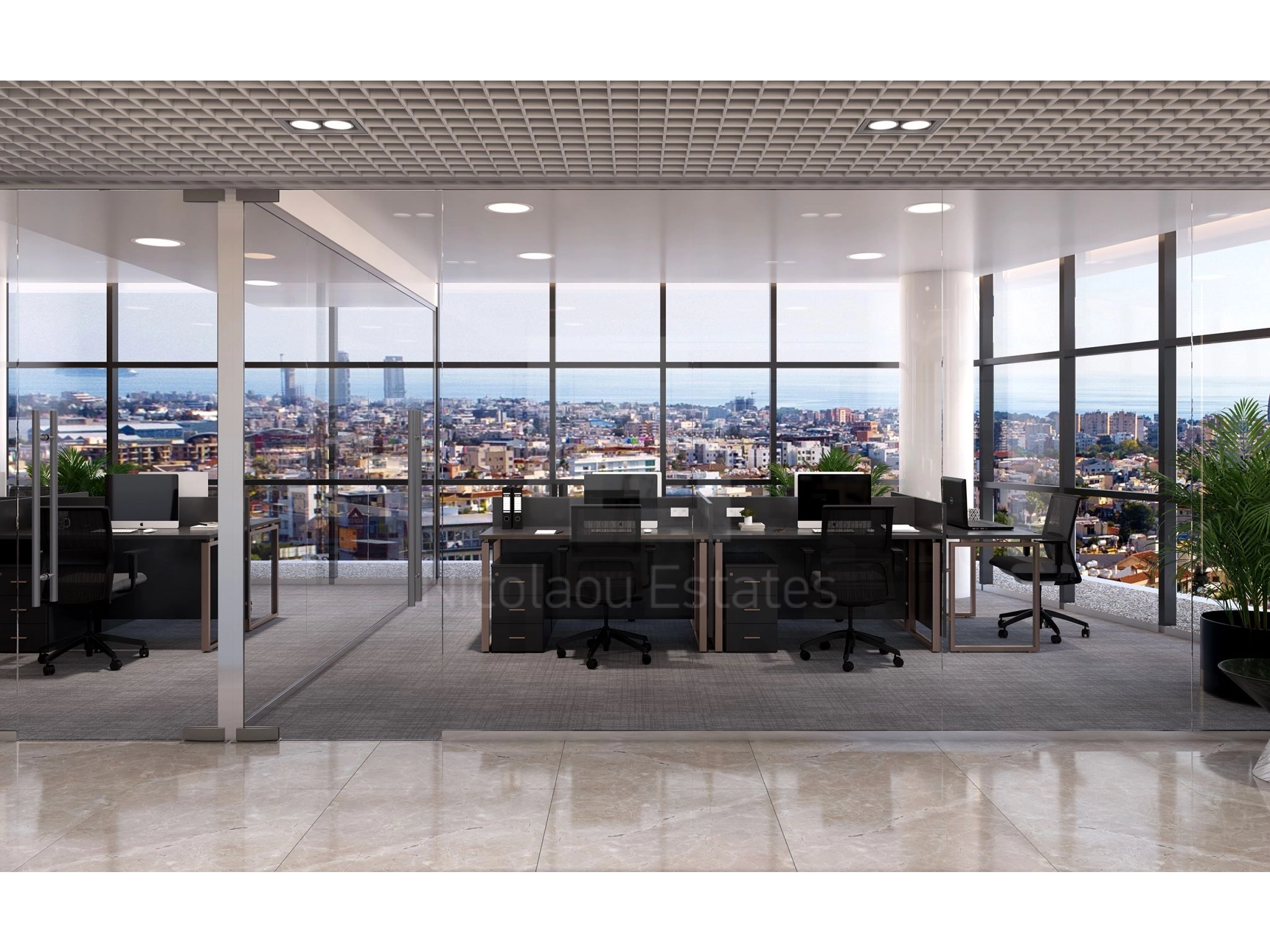 This prime location alongside the main highway and adjacent to the Mesa Geitonia intersection was the obvious choice for a building with such visual presence. Accessibility is easy for both employees and clients from all Limassol suburbs as well as from Nicosia Larnaca and Paphos. All commercial government and municipal resources are within easy reach. And for convenience many banking shopping and dining establishments are close by. Thoughtfully designed as a high performance office building this Business Tower delivers enhanced opportunities for high levels of employee satisfaction greater productivity and improved mental and physical well being. To accomplish these objectives it benefits from an integrated design approach that focuses on meeting design and functionality objectives. Floor layouts are open and flexible and areas can be partitioned if required. Designed to support ease of communication and collaboration they are easily adapted to changes in business models or technological innovations. Each floor incorporates a secure server room kitchen washroom and small veranda. All floors enjoy abundant natural daylight and the upper floors have views to the mountains and the sea.