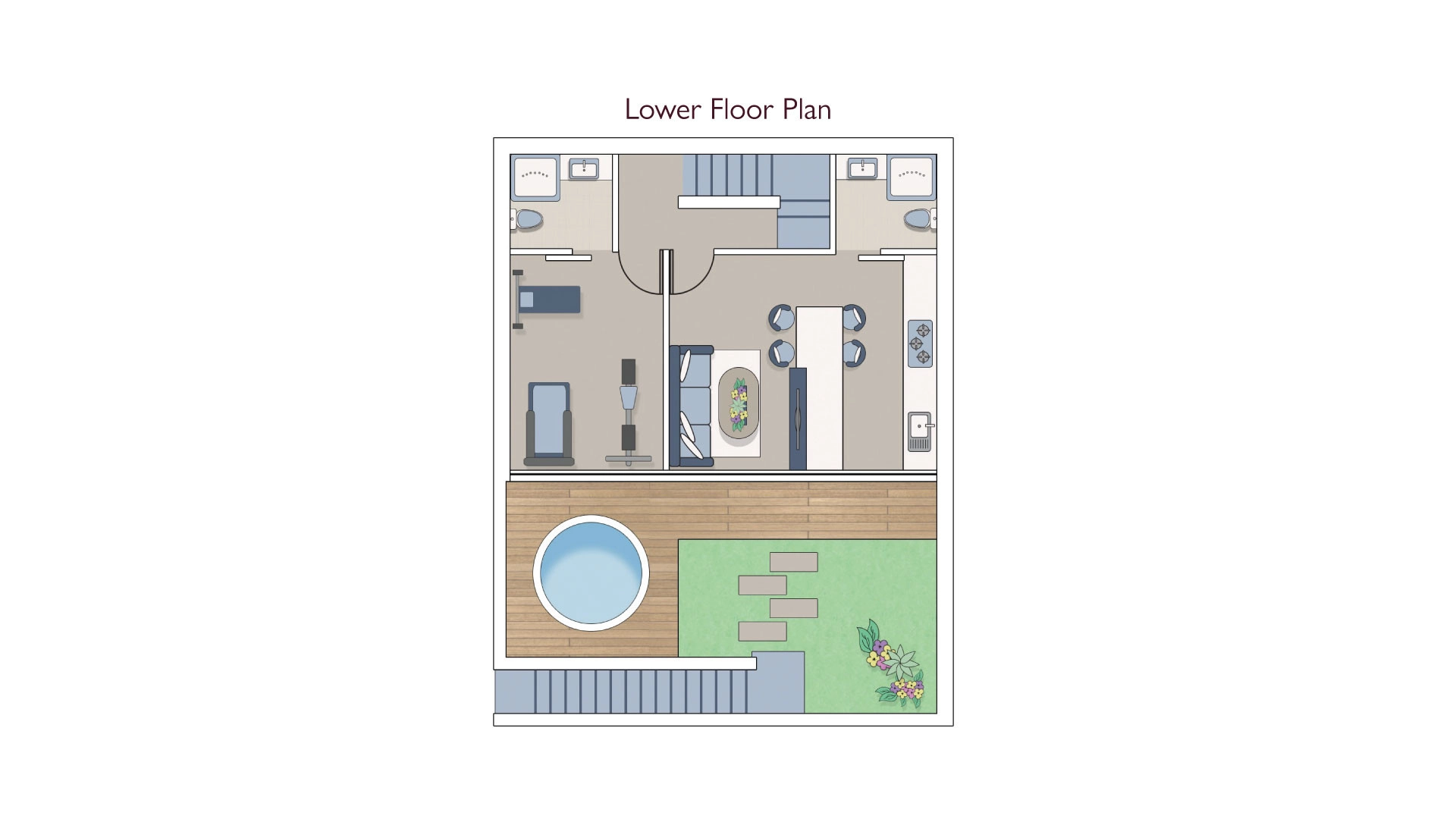 The first floor is dedicated to the private living quarters, with bedrooms designed for comfort, tranquility, and natural light. The lower level adds another dimension to the home, offering a fourth bedroom, a versatile recreational space, and a luxurious jacuzzi—perfect for relaxation or entertaining guests.