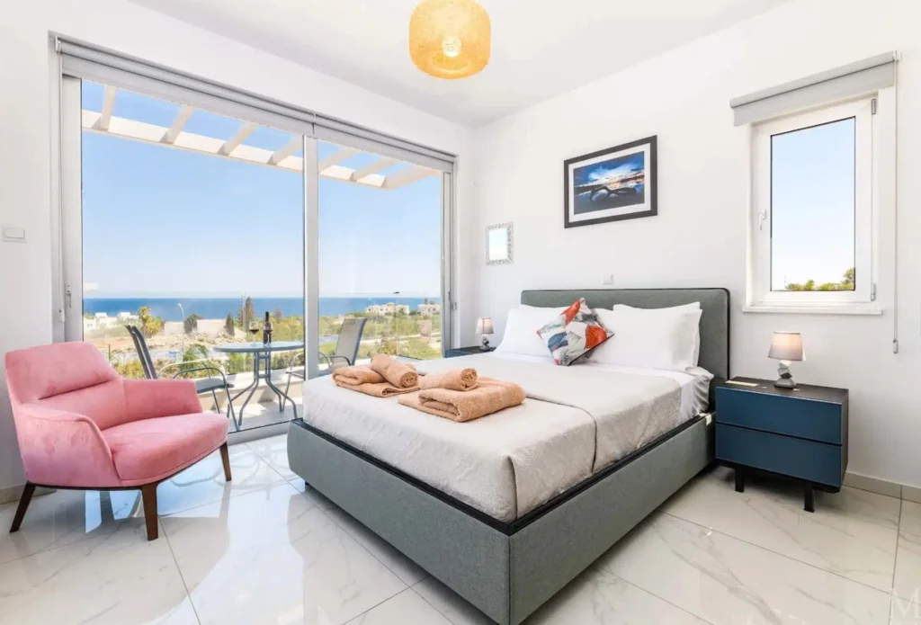 Two ensuite bedrooms upstairs, each featuring a private veranda with stunning Mediterranean views.