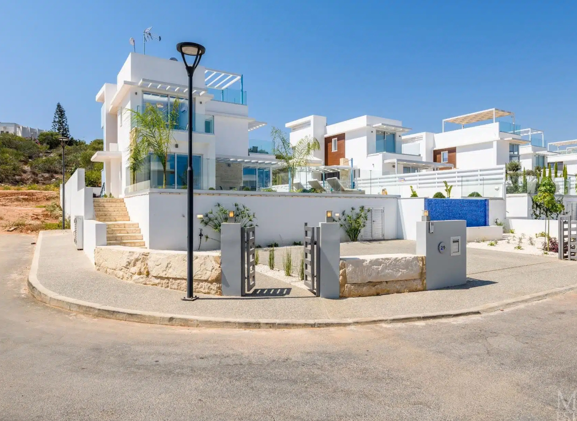 A harmonious blend of contemporary design and breathtaking surroundings, this exquisite 3-bedroom villa offers a refined living experience in one of Cyprus’ most sought-after coastal locations. Situated in the prestigious Green Bay area of Protaras, this residence boasts unparalleled sea views and close proximity to award-winning Blue Flag beaches.