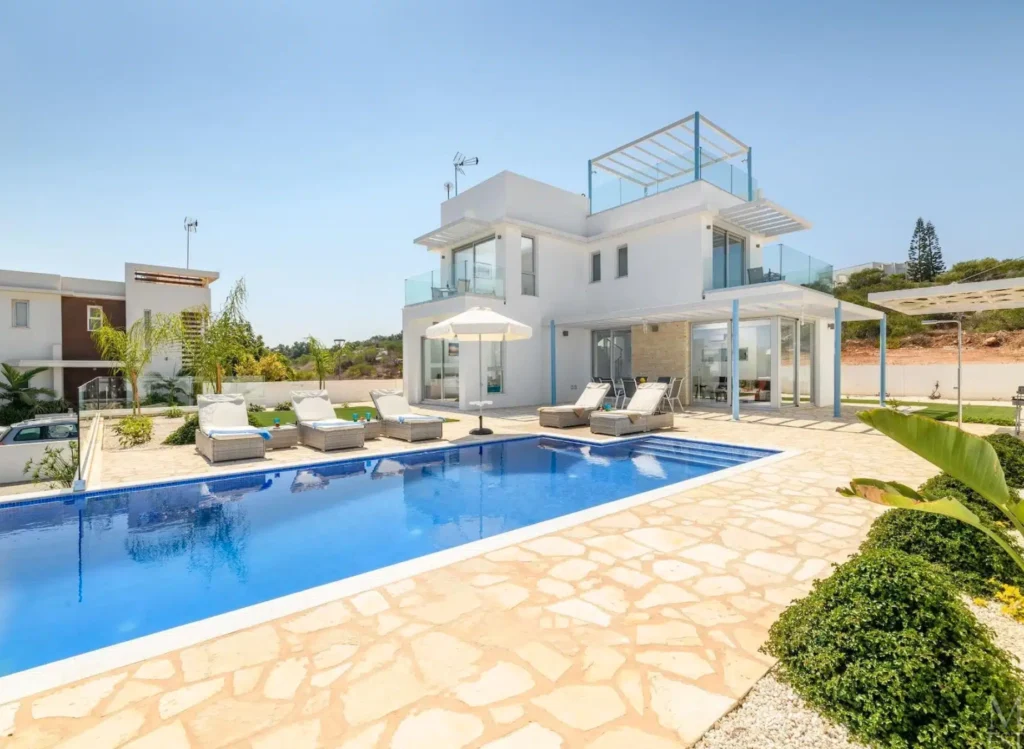 A harmonious blend of contemporary design and breathtaking surroundings, this exquisite 3-bedroom villa offers a refined living experience in one of Cyprus’ most sought-after coastal locations. Situated in the prestigious Green Bay area of Protaras, this residence boasts unparalleled sea views and close proximity to award-winning Blue Flag beaches.