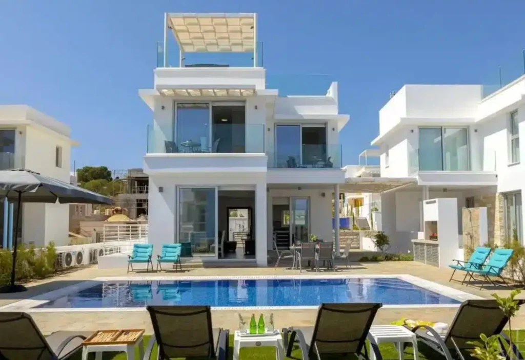 A harmonious blend of contemporary design and breathtaking surroundings, this exquisite 3-bedroom villa offers a refined living experience in one of Cyprus’ most sought-after coastal locations. Situated in the prestigious Green Bay area of Protaras, this residence boasts unparalleled sea views and close proximity to award-winning Blue Flag beaches.