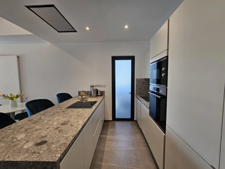 Beautiful new apartments for sale in a modern luxury complex. The convenient location of the property allows for quick access to all necessary infrastructure for a comfortable life. There is a landscaped garden on the enclosed territory of the complex, a communal swimming pool has been built and lighting has been installed. The best quality and time-tested materials were used in the construction. The apartment has a spacious living room combined with a kitchen, 2 bedrooms, a large veranda, Underfloor heating, a VRV system, a photovoltaic system, an alarm system, new modern furniture and high-quality appliances, a parking space. Within walking distance of the beach and Dasoudi Park, supermarkets, shops, banks, schools and much more.
