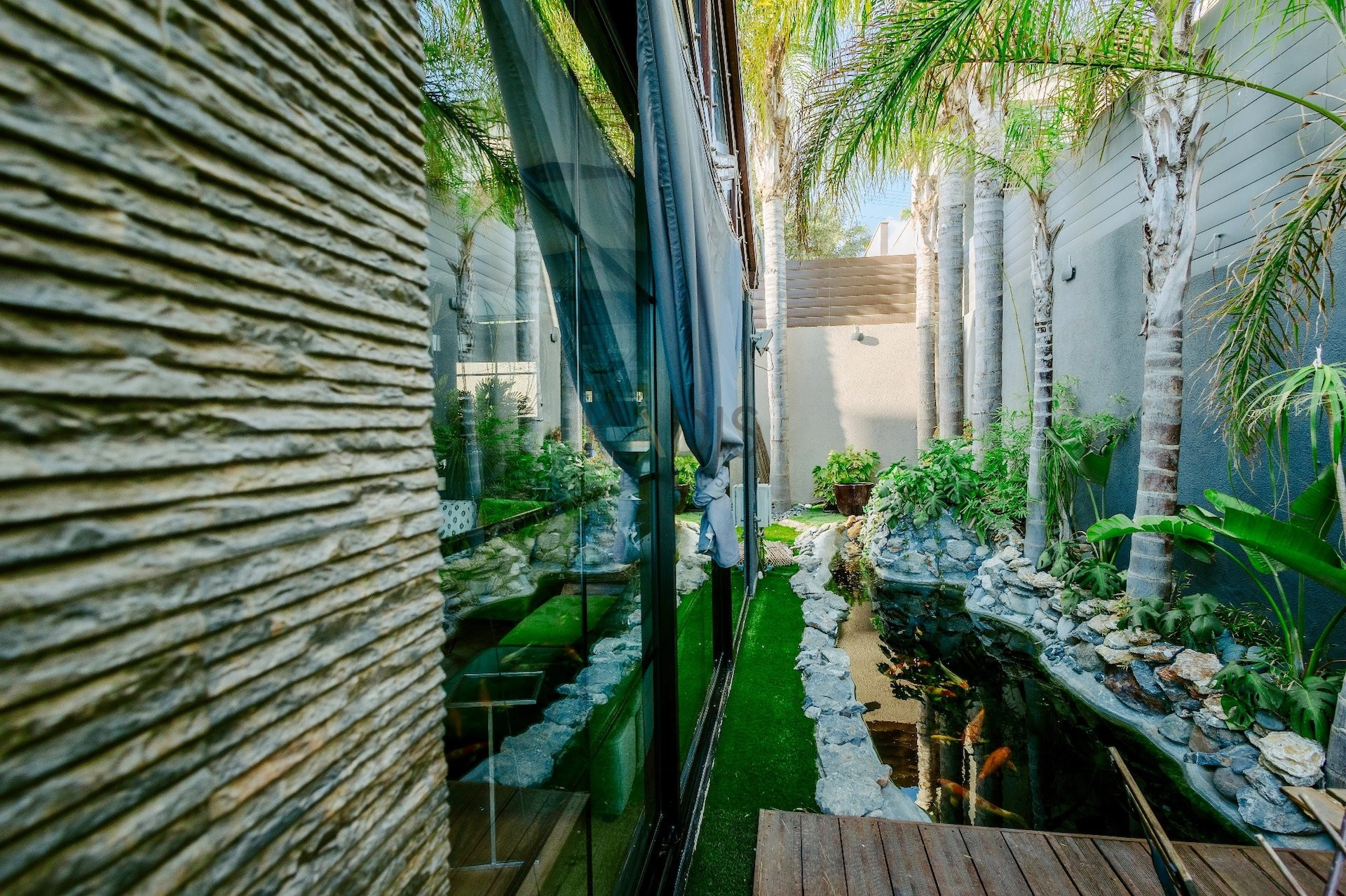 • Elegant relaxation room overlooking a tranquil koi pond