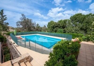 Additional features include a separate one-bedroom guesthouse, ideal for visitors or staff, and a covered garage for two cars. The home is equipped with central heating, air conditioning, photovoltaic panels, a burglar alarm system, and double-insulated walls, ensuring comfort and efficiency year-round.