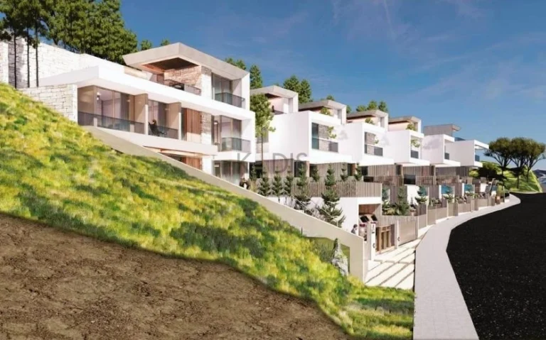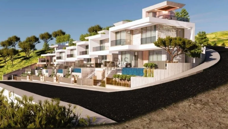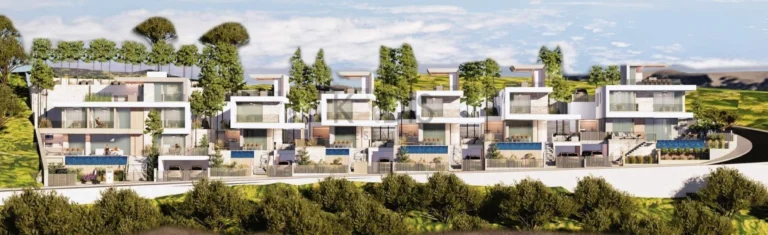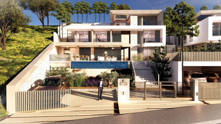 The villa’s exterior is centered around a private 4m x 8m swimming pool, surrounded by a paved sunbathing and relaxation area. A wooden pergola adds character and shade, while the garden space—delivered with topsoil preparation—invites personalization into a green oasis.