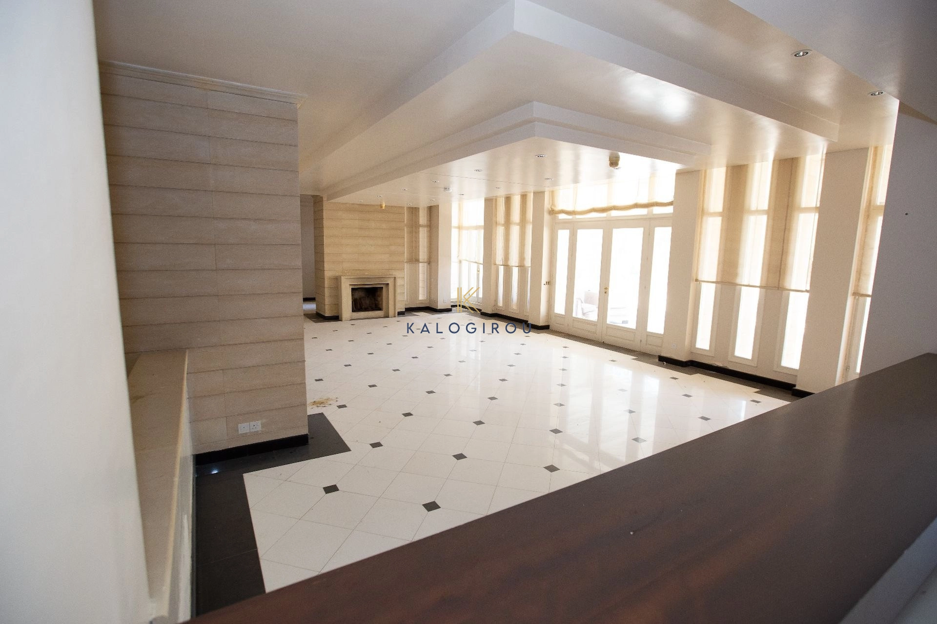 The property has 1.583 sq.m. of internal covered areas. The ground floor features a spacious kitchen, multiple living rooms, a sitting area, a library, and a guest WC, creating an inviting atmosphere for both relaxation and entertaining. The first floor consists of four bedrooms with en-suite bathrooms, each designed with comfort in mind, along with a walk-in wardrobe and a fireplace, adding a touch of warmth and sophistication.