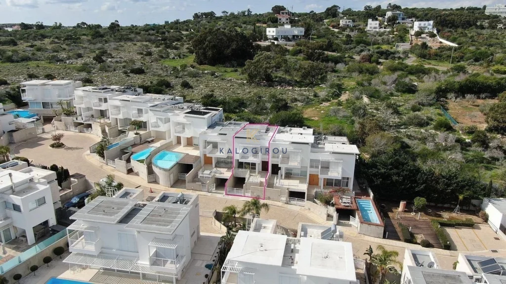 Coastal, 3-bedroom Semi-detached house for sale in Protaras, Famagusta. It is located in eastern Ayia Napa center, along the beachfront coastline of the sculpture park. Wake with the rhythmic sounds and sweet fragrance of the Mediterranean waves, to a vista stretching from the dramatic Cape Greco cliffs to the vibrant Ayia Napa harbor. Close to amenities such as shops, cafes, restaurants and recreational activities, turning each visit into a fun and unforgettable memory. Only a 15-minute drive to Paralimni with its trendy boutiques, friendly taverns and abundance of other amenities.