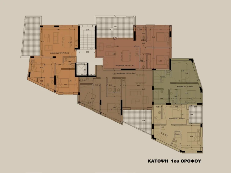 For sale 2 bedroom apartment with 2 bathrooms on the ground floor in Nicosia, Lakatameia. The area of the apartment is 101 m2. All plumbing will be white and of high quality. Kitchen countertops, cabinets and doors are made of melamine, colors of the customer’s choice, with handles. Parking and a storage room are provided for each apartment, and there is an elevator in the building. There will be wiring for air conditioners for each apartment. The floors in the premises will be covered with high—quality ceramic tiles, and the verandas with tiles suitable for outdoor use. The main entrances to the apartments will meet modern standards and fire safety requirements. All window and door openings will be painted white PVC in compliance with energy efficiency specifications A.All external walls are made of high-quality bricks with a total thickness of 25 cm with thermal insulation properties, the internal walls are 10 cm thick. Styrofoam (thermal facade) will be installed outside with subsequent finishing. The frame of the building will be reinforced with high-strength steel, as well as concrete with earthquake-resistant design. The apartment is located in close proximity to all urban infrastructure facilities, which makes it a convenient place to live.